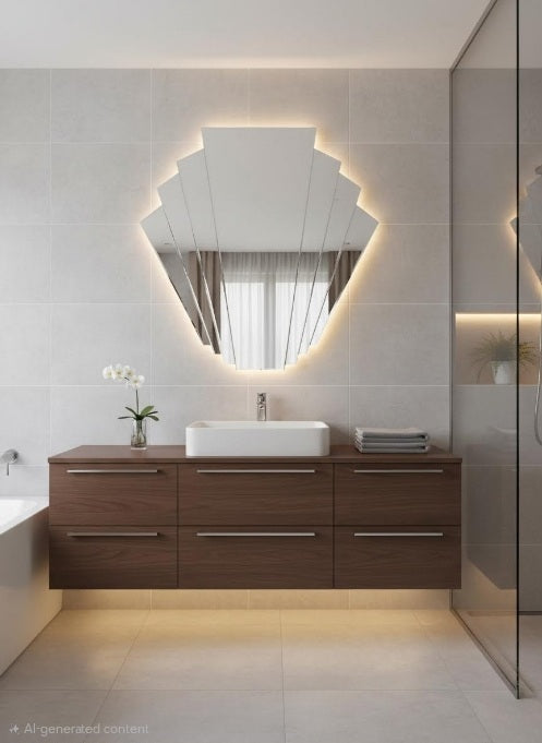 Classic art deco fan mirror featuring 7 mirrored panels.