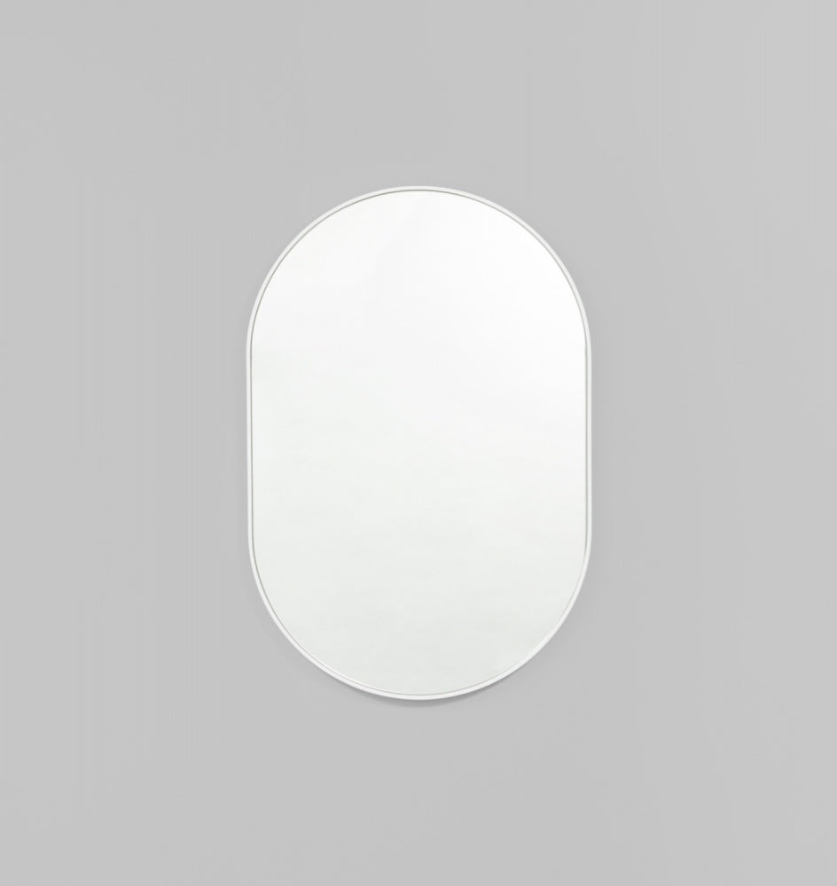 From the hallway to the bedroom or living room, the streamlined and minimal design of these 'tic-tac' oval mirrors enhance any space. Bright white matt frame.