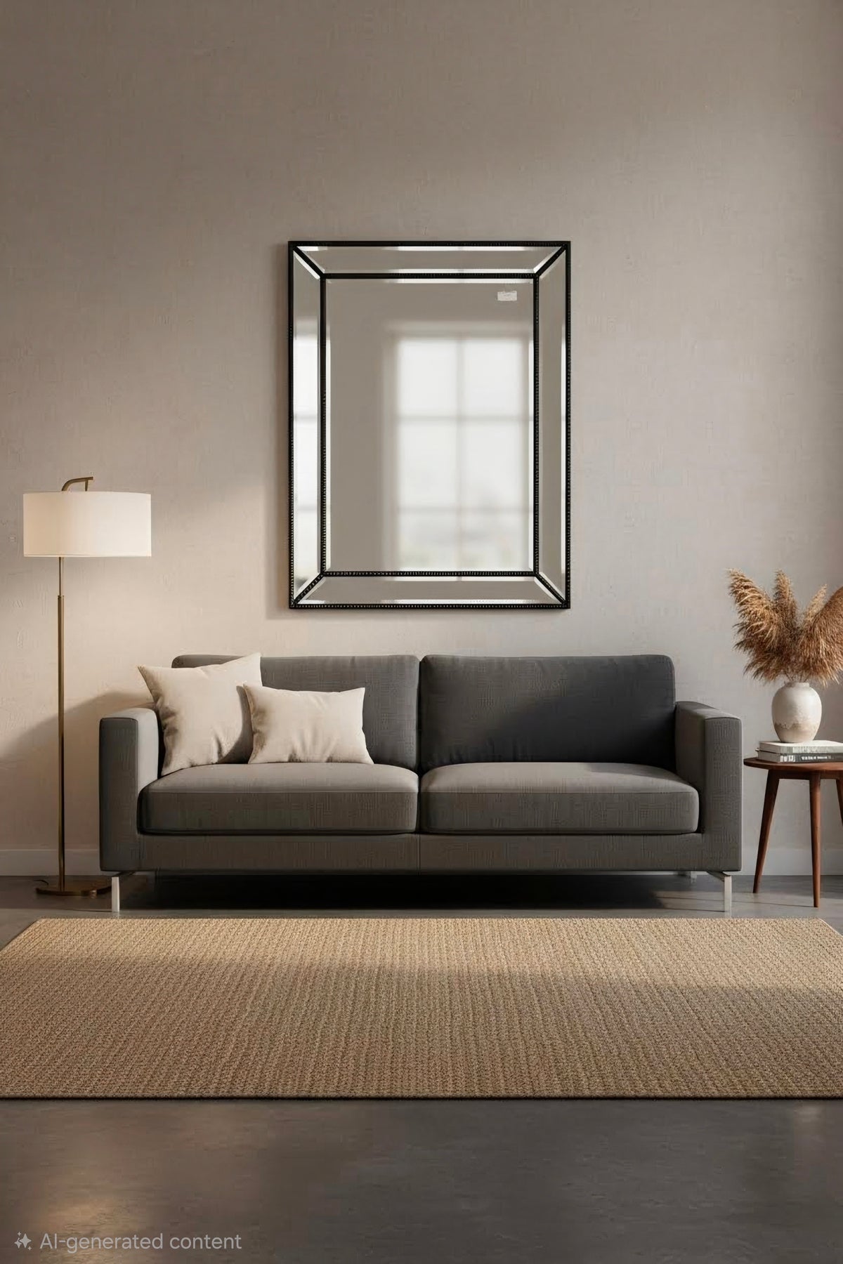 This mirror has an angled mirrored frame with black beads. It has a classic feel to it that would look great in any room of the home.