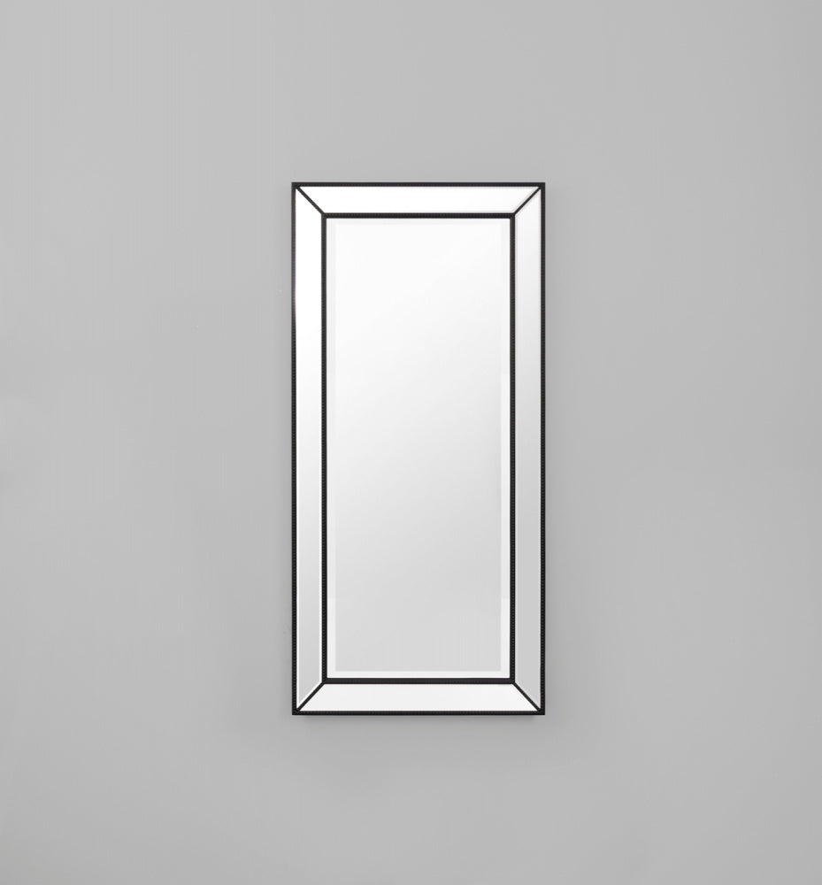 This mirror has an angled mirror frame with black beading. It has a classic feel to it that would look great in any room of the home.