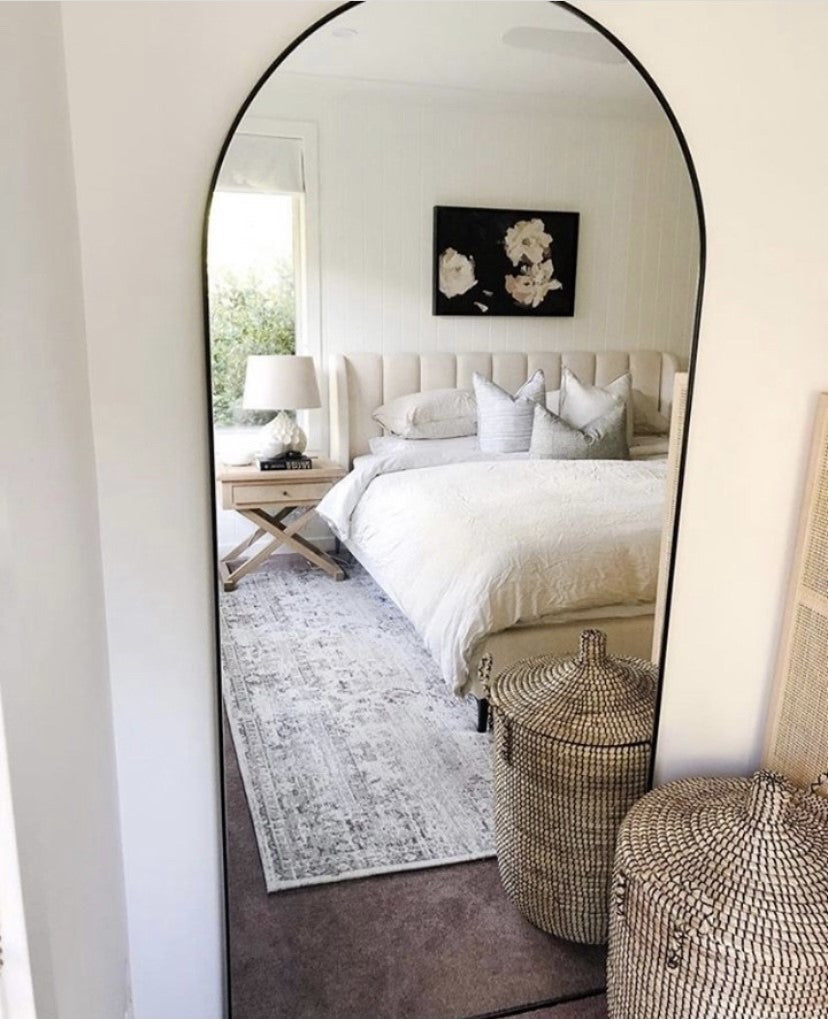 An arched floor mirror designed to make a statement in any space. Slimline black matt frame.